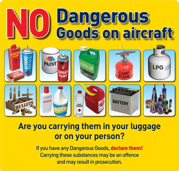 Safety considerations mean the items listed below (and other similar items) are not allowed in your baggage at all, whether hand baggage or check in baggage: